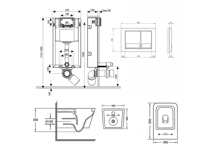 Інсталяція, панель змиву, звукоізоляційна прокладка, унітаз, сидіння, кріплення.