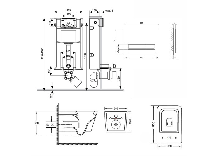 Інсталяція, панель змиву, звукоізоляційна прокладка, унітаз, сидіння, кріплення.