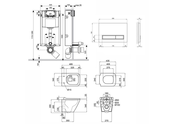 Інсталяція, панель змиву, звукоізоляційна прокладка, унітаз, сидіння, кріплення.