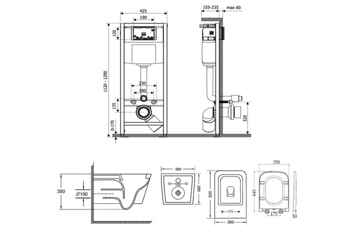Унітаз, сидіння, інсталяція, панель змиву, звукоізоляційна прокладка, кріпильні деталі.