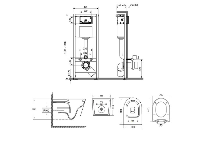 Унітаз, сидіння, інсталяція, панель змиву, звукоізоляційна прокладка, кріпильні деталі.