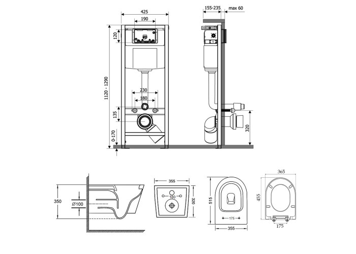 Унітаз, сидіння, інсталяція, панель змиву, звукоізоляційна прокладка, кріпильні деталі.