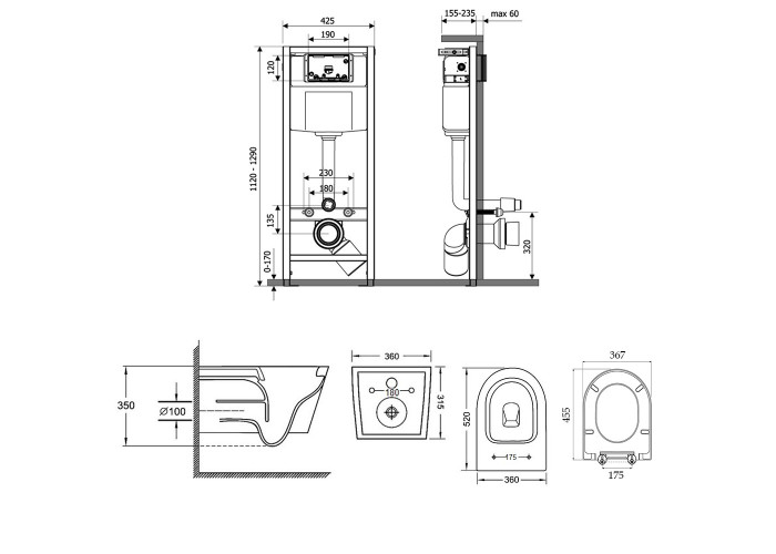 Унітаз, сидіння, інсталяція, панель змиву, звукоізоляційна прокладка, кріпильні деталі.