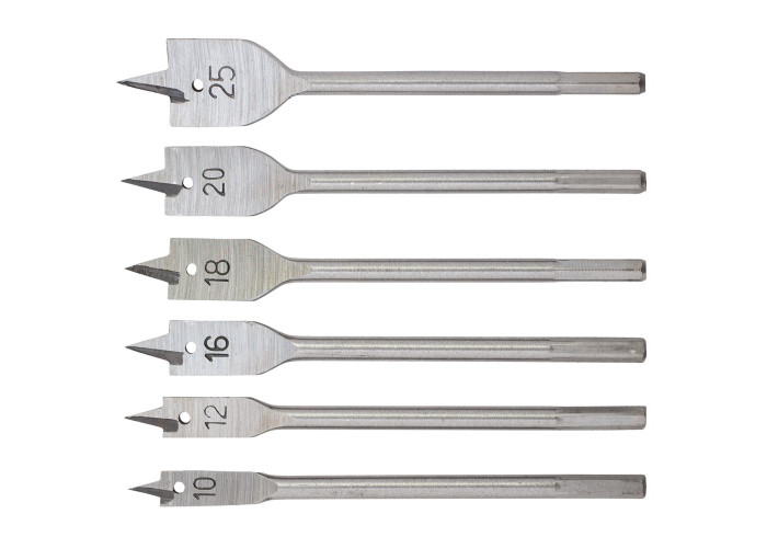 Набір свердел пір'яних 6шт (Ø10, 12, 16, 18, 20, 25мм, довжина 150мм) Grad (1314665) призначений для свердління отворів у виробах з деревини м'якої і середньої твердості, в легкобробних будівельних матеріалах (гіпсокартоні, МДФ-панелях, пластику ін.). Переваги: центруючий робочий наконечник; дві ріжучих кромки центрує наконечника; дві пари різальних крайок торцевої і бічний робочих частин; отвір для підвішування; цифрове маркування; шестигранний хвостовик (Нех 1/4 "); сталь 45; твердість 45-48 HRC; можливість свердління глибоких отворів; термічна обробка сталі при виготовленні свердла. Купити набір свердел пір'яних Grad Ви можете, оформивши замовлення в нашому інтернет-магазині за допомогою простої форми , доставка здійснюється по всій Україні. Якщо у Вас виникли питання, Ви можете зателефонувати за вказаними номерами телефонів або замовити зворотний дзвінок. Фахівці нашого інтернет-магазину нададуть Вам докладн