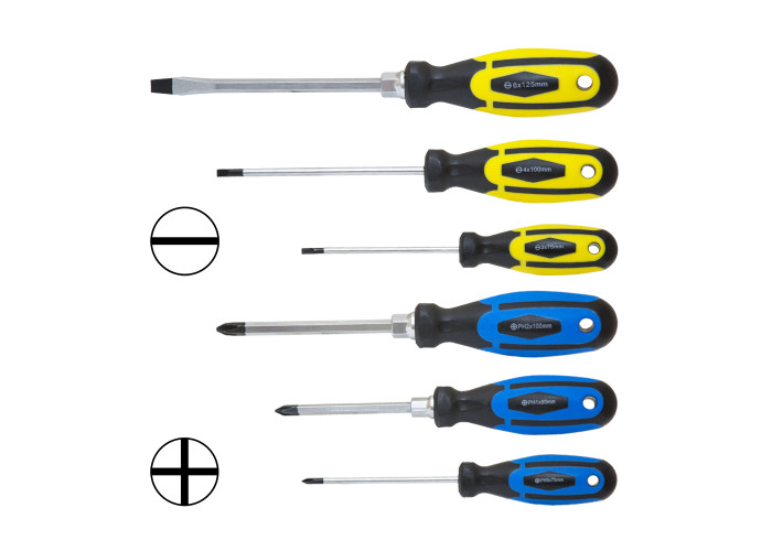 Набір викруток посилених під ключ 6шт CrV Sigma (4001151) призначений для монтажу і демонтажу різьбових з'єднань. Розміри викруток з хрестовим шліцом: PH0 * 75 мм; PH1 * 80 мм; PH2 * 100 мм. Розміри викруток з прямим шліцом: SL3 * 75 мм; SL4 * 100 мм; SL6 * 125 мм. Особливості: Всі викрутки оснащені оксидованим магнітним наконечником; все викрутки виготовлені з високоякісної хромванадієвої сталі з антикорозійним захистом; все викрутки мають ергономічну двокомпонентну протиковзну рукоятку з упором для великого пальця; частина викруток має стрижень шестигранною форми, що забезпечує високу міцність на скручування і злам; частина викруток має посилене для затягування ключем підставу, що забезпечує відкручування заржавілих і прикипіла гвинтів і саморізів. Купити набір посилених викруток Sigma Ви можете, оформивши замовлення в нашому інтернет-магазині за допомогою простої форми, доставка здійснюється по всій Україні. Якщо у Вас виникли питання, Ви можете зателефонувати за вказаними номерами телефонів або замовити з