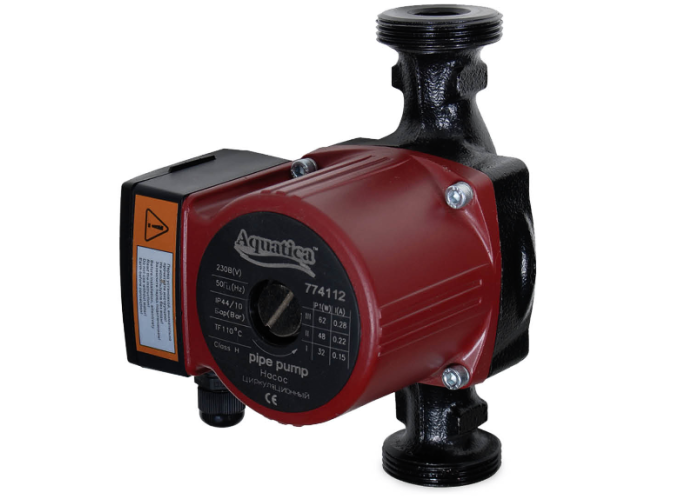 Насос циркуляційний 65Вт Hmax 4м Qmax 63л/хв Ø1½" 180мм + гайки Ø1" AQUATICA (774112) призначений для перекачування чистої води в центральних і зональних системах опалення, в системах кондиціонування повітря і в системах гарячого водопостачання. Корпус: чавун; вал двигуна: кераміка; робоче колесо: технополімер. Електродвигун асинхронний, три швидкості, безшумний; обмотки статора: мідь; гільза статора електродвигуна: нержавіюча сталь AISI 304; підшипник: керамічний радіальний; напруга: 220-240 В; частота: 50 Гц; клас ізоляції: Н; клас захисту: IP44. патрубок: DN насоса: 1 "; DN перехідника: ¾". Умови застосування: максимальна температура перекачуваної рідини: +110 ºC; максимальна температура навколишнього середовища: +40 ºC; допустимий тиск в системі: до 10 бар; тільки для чистої води без домішок (піску, глини, вапна і т.д.); водневий показник води (pH): 6.5 - 8.5; загальна мінералізація води: не більше 1500 г / м³; термін гарантійного обслуговування: 18 місяців.