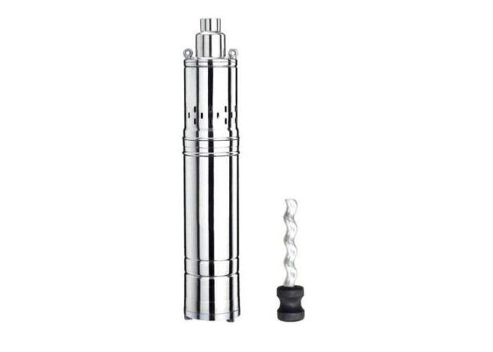 Насос шнековий свердловинний 0.75кВт H 170 (107) м Q 35 (20) л / хв Ø96мм нержавіючий AQUATICA (DONGYIN) (777213) призначений для перекачування чистої води для побутового використання при водопостачанні з свердловин і резервуарів (обов'язкова установка кожуха охолодження), для перекачування води в резервуари, для зрошувальних систем, для автоматичної подачі води. Зовнішній діаметр: 75 мм; корпус насосної частини: нержавіюча сталь AISI 304; вихідний фланець: нержавіюча сталь AISI 304; вал насосної частини: нержавіюча сталь AISI 304; шнек: нержавіюча сталь AISI 304; втулка шнека: резино-металева; Зворотний клапан: гума. Тип двигуна: асинхронний, маслонаповнений, з вбудованою в обмотку термозахистом. Обмотка статора: мідь. Корпус електродвигуна: нержавіюча сталь AISI 304. Вал двигуна: нержавіюча сталь. Механічне ущільнення в масляній камері: кераміка / графіт. Підшипник: кочення (C & U). Напруга: 220-240 В; Частота: 50 Гц; Клас ізоляції: F; Клас захисту: IP68; Довжина кабелю: 10 м. Гарантія 18 місяців.