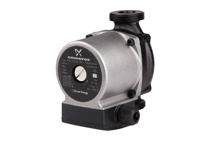 Циркуляційний насос для систем теплої підлоги. Монтажна довжина - 130мм. Марка Grundfos. Циркуляційні насоси UPS призначені для циркуляції води в опалювальних системах, місцевих системах гарячого водопостачання, а також в системах кондиціонування повітря і охолодження. Насоси застосовуються головним чином для одно- або двотрубних систем опалення, систем теплих підлоги, також можуть використовуватися в змішувальних контурах великих систем.