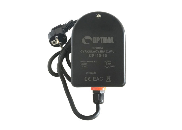 Насос рециркуляційний Optima CPI 15-15 мм - призначений для примусової циркуляції в циклах гарячого водопостачання де температура води не перевищує 90 градусів Цельсія.