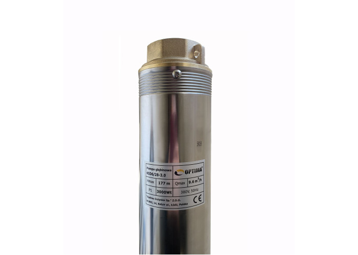 Насос свердловинний з підвищеною стійкістю до піску OPTIMA 4SD 6/28 3,0 кВт 177м 3-х фазний діаметром 4 "призначений для подачі води з свердловин (діаметром від 4" або 100 мм) і відкритих водойм з глибиною більше ніж 9 м, коли використання поверхневого насоса неможливо або недоцільно.