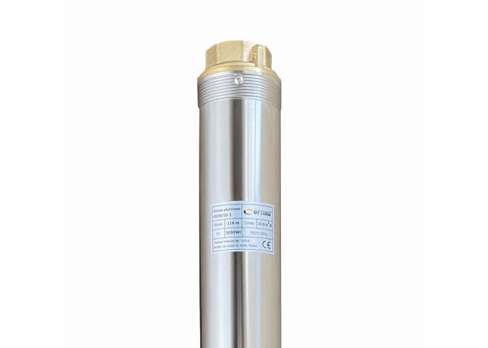 Насос OPTIMA 4SD8 / 20 3 кВт 116м 3-х фазний складається з двох частин: двигун в нижній частині і насос у верхній частині, жорстко зєднані між собою зубчастої муфтою міжнародного стандарту Nema і має забір води в середній частині корпусу. Насос относятітся до насосів відцентрового типу і має багатоступеневу конструкцію і «плаваючі» робочі колеса, завдяки яким реалізується підвищена стійкість до піску (до 2000 г / м3).