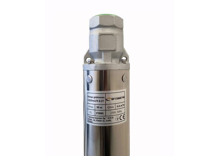 Насос OPTIMA PM 3.5SDm3 / 9 0.37 кВт 55м складається з двох частин: двигун в нижній частині і насос у верхній частині, жорстко зєднані між собою зубчастої муфтою міжнародного стандарту Nema і має забір води в середній частині корпусу. Насос относятітся до насосів відцентрового типу і має багатоступеневу конструкцію і «плаваючі» робочі колеса, завдяки яким реалізується підвищена стійкість до піску (до 1500 г / м3).