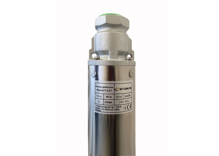 Насос OPTIMA PM 4QJm4 / 7 0.37 кВт 50м складається з двох частин: двигун в нижній частині і насос у верхній частині, жорстко зєднані між собою зубчастої муфтою міжнародного стандарту Nema і має забір води в середній частині корпусу. Насос относятітся до насосів відцентрового типу і має багатоступеневу конструкцію і «плаваючі» робочі колеса, завдяки яким реалізується підвищена стійкість до піску (до 600 г / м3).