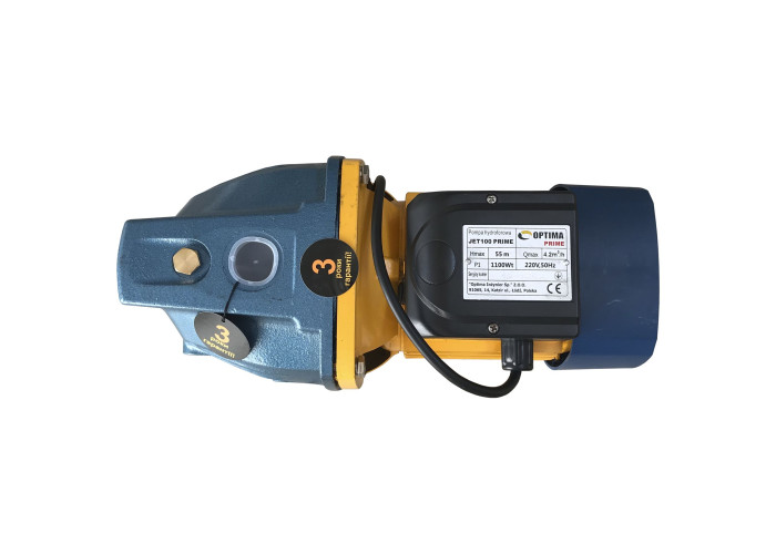 Optima JET100 PRIME 1,1 кВт чавун - це насос відцентрового типу з одним робочим колесом. Тиск в відцентрових насосах створюється завдяки відцентровій силі, що виникає при впливі лопаток робочого колеса на рідину. Глибина підняття води до 9м, досягається завдяки ежектору (трубці Вентурі) встановленим в корпусі насоса. Рідина, що всмоктується, тільки частково подається в нагнітальний патрубок. Частина води, що залишилася, рециркулює через ежектор, який будучи зєднаний з камерою всмоктування, створює в ній розрідження, необхідне для підняття води. Перед запуском в роботу необхідно залити воду в насосну частину. Завдяки системі Вентурі вирішується проблема перекачування рідин з вмістом повітря.