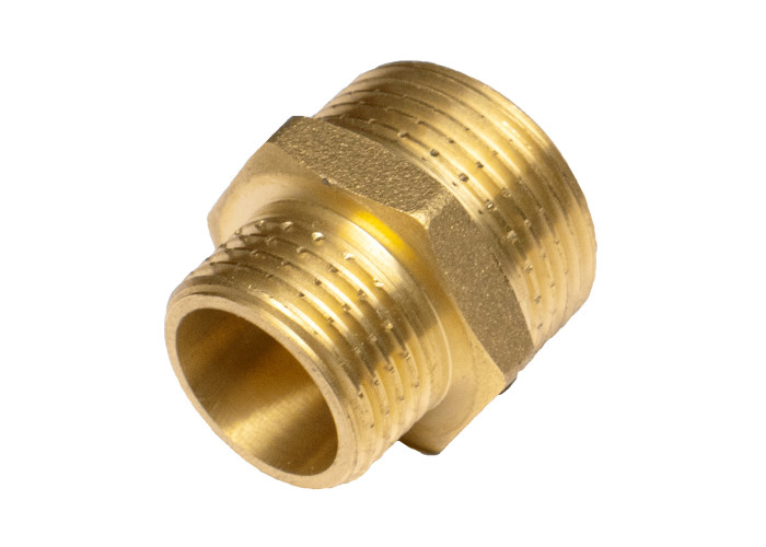 Ніпель перехідний латунний без покриття, розмір 3/8"-1/2", зовнішня різьба. Різьбові фітинги торгової марки «Никифоров» (Нікіфоров) виробляються в Україні, в Харкові. Ця продукція користується великим попитом з двох головних причин: справді великий асортимент товару та дуже доступні ціни. Фітинги Никифоров робляться з непокритої латуні. Вони представлені в широкій розмірній лінійці і дуже різні за типами. Бренд пропонує рівнопрохідні і редукційні муфти, кутники, трійники, хрестовини, заглушки, ніпелі, перехідники, подовжувачі, згони, футорки, врізки в бак, штуцери. Продукція поставляється з зовнішньою і внутрішньою різьбою розміром від 1/2 до 2 дюймів. Вона використовується для створення трубопроводів в системах водо- і газопостачання, також може застосовуватися при переході з трубопроводів, виконаних з різних матеріалів. Фітинги Никифоров створені для використання на вітчизняному ринку і активно конкурують там з продукцією дорожчих брендів.