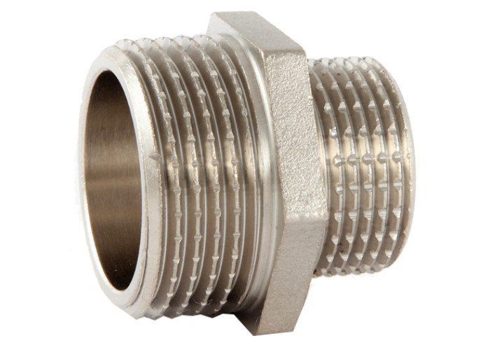 Ніпель зовнішній-зовнішній, редукційний, діаметр 3/8 х 1/2 дюйми, виготовляють з латуні, тип покриття — нікель. Різьбові фітинги - це компоненти трубопроводу, призначені для розгалуження і з'єднання його окремих частин, переходу на трубу більшого або меншого діаметру. Важливою сферою застосування різьбових фітингів є їх використання при підключенні сантехнічних приладів (зливні бачки, змішувачі, котли, бойлери, системи очищення води, пральні і посудомийні машини). Латунні нікельовані фітинги ASCO Armatura призначені для з'єднання різних видів трубопроводів, а також для підключення сантехнічної арматури, різноманітних приладів, пристроїв контролю і регулювання в трубопровідній системі. Ці фітинги виготовляються методом гарячого штампування, що дозволяє отримувати вироби підвищеної міцності та мають потовщені стінки. Асортимент різьбових фітингів включає коліна, трійники, муфти, ніпелі, заглушки, перехідники, футорки, прямі і кутові згони-американки. Вся продукція фірми ТМ ASCO armatura надійна, якісна і довговічна.
