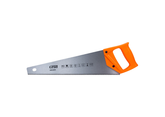 Ножівка по дереву 400мм 7TPI Grad 4401845 призначена для поздовжнього і поперечного розпилу заготовок середніх і дрібних розмірів деревини з м'яких і твердих порід, ДСП, фанери і ПВХ.