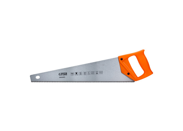Ножівка по дереву 450мм 7TPI Grad 4401855 призначена для поздовжнього і поперечного розпилу заготовок середніх і дрібних розмірів деревини з м'яких і твердих порід, ДСП, фанери і ПВХ.