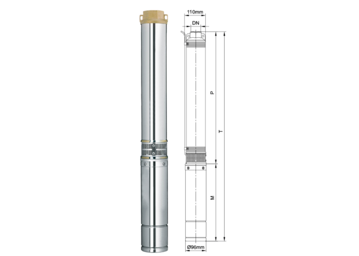 Глибинний відцентровий насос даної серії призначений для перекачування чистої води і може застосовуватися для побутового використання при водопостачанні з свердловин і резервуарів, для перекачування води в резервуари, для зрошувальних систем, автоматичної подачі води спільно з невеликими резервуарами при використанні керуючої автоматики. Корпус насоса виконаний з нержавіючої сталі AISI 304. Вихідний фланець зроблений з латуні, вал насосної частини - з нержавіючої сталі, робоче колесо - з технополімера. Потужність насоса Aquatica 777445 становить 550 Вт, а максимальна продуктивність 55 л/хв. Максимальний напір 63 м, при цьому глибина занурення під дзеркало води досягає 60 м. У моделі використовується асинхронний двигун з вбудованим в обмотку термозахистом. Обмотка статора двигуна з міді. Максимальна температура рідини, що перекачується, становить 35°C. Довжина кабелю 40 м.