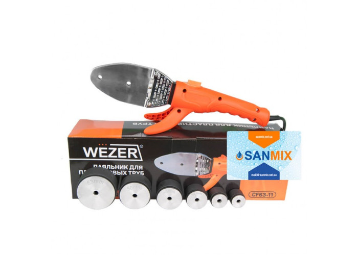 Плоский паяльник Wezer CF63-11 - це компактне і сіперфункціональное пристрій для стикового безшовної зварювання пластикових труб. Даний апарат працює з діаметром від 20 до 63 мм. Це все найбільш затребувані розміри, які використовуються в побуті. До того ж паяльник Wezer продається з 6 насадками. Купівля такого їх кількості обійдеться в копієчку, а в наборі їх вартість буде набагато нижче.