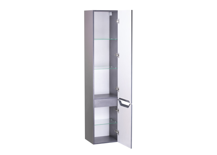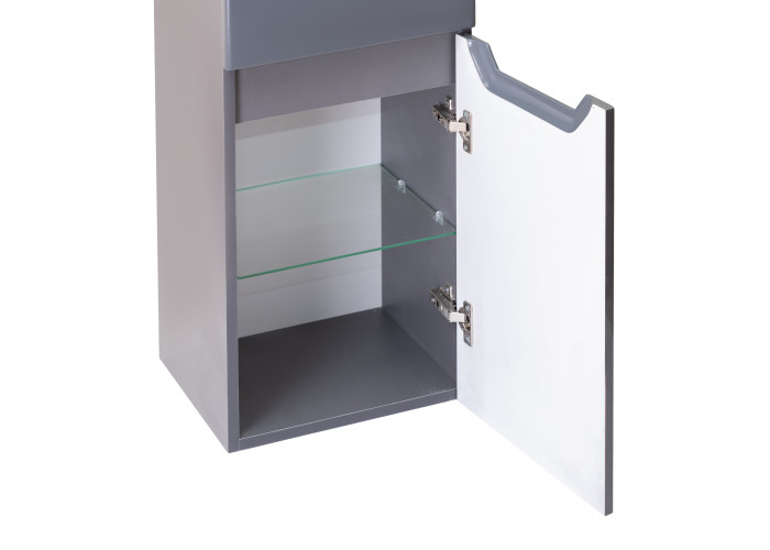 Підвісний пенал Qtap Scorpio QT1476PP1652RG виготовлений з ДСП з двошаровою ламінацією сірого кольору, фасадна частина з МДФ з глянцевим покриттям. Оснащений двома відділеннями з одностулковими дверима, в яких розташовані полички зі скла. Виріб виконаний в елегантному лаконічному стилі, який впишеться в дизайн будь-якої ванної кімнати.