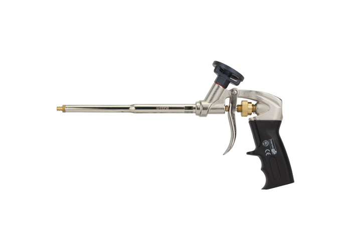 Пістолет для поліуретанової піни тефлонове покриття адаптера ULTRA (2722012). Призначений для робіт з монтажною піною. Використовується при монтажі вікон, дверей та інших будівельних конструкцій для заповнення пустот і додання герметичності. Переваги: надійна герметична конструкція виключає висихання піни до 30 днів; якісне тефлонове покриття адаптера-перехідника не допускає налипання піни; унікальний механізм регулювання подачі піни дозволяє значно підвищити продуктивність праці; основні вузли виготовлені з латуні; ергономічна ручка забезпечує комфорт в роботі; рівномірна спрямована подача піни; чотири насадки різної довжини дають можливість працювати в важкодоступних місцях; адаптер надійно з'єднаний з корпусом за допомогою інноваційної системи термічного впливу.