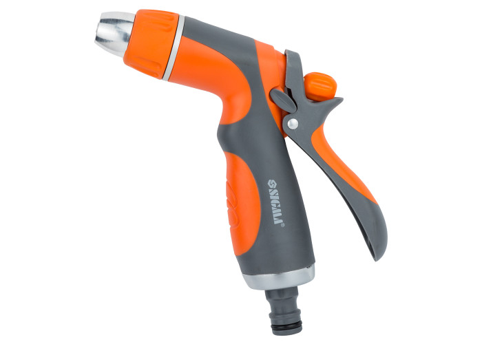 Пістолет розпилювач 2-х режимний (ABS + AL + TPR) FLORA (5011414) призначений як насадка на поливальний шланг через швидкознімний коннектор. Дозволяє регулювати напрямок і ширину виходить струменя під час поливу. Можливе застосування для чищення садових інструментів, обладнання та меблів. Переваги: ударостійкий пластик з термопластичних гумовим покриттям; плавне регулювання потоку; гумова прокладка, що забезпечує герметичність з'єднання з шлангом; ергономічна рукоятка з фіксатором для безперервного поливу. Режими: "Струмінь"; "Туман". Купити пістолет розпилювач FLORA Ви можете, оформивши замовлення в нашому інтернет-магазині за допомогою простої форми, доставка здійснюється по всій Україні. Якщо у Вас виникли питання, Ви можете зателефонувати за вказаними номерами телефонів або замовити зворотний дзвінок. Фахівці нашого інтернет-магазину нададуть Вам докладні консультації та допоможуть зробити правильний вибір.