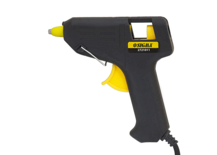 Пістолет термоклеевой Ø8 мм 10Вт Sigma (2721011) призначений для склеювання кераміки, паперу, картону, дерева і металу. Незамінний в побуті, багатофункціональний. Особливості: робоча температура 180-220ºС; пластик високої якості, під час експлуатації не деформується під впливом температур; конструкція пістолета оснащена захистом від висмикування шнура; компактний і легкий в роботі; надійна лита конструкція камери нагрівального елементу виготовлена ​​з якісного матеріалу і не виходить з ладу при впливі температур. Перед початком роботи вставте клейовий стрижень в отвір розташований з тильної сторони пістолета. Підключіть обладнання до мережі, переконайтеся що індикатор на ручці загорівся. Після цього поставте пістолет на підставку і почекайте 5-8 хвилин. Далі, натискаючи на курок, подавайте клейовий стрижень вперед до витікання клею з носика. Після завершення роботи вимкніть прилад з мережі і почекайте 5-8 хвилин, поки він охолоне.