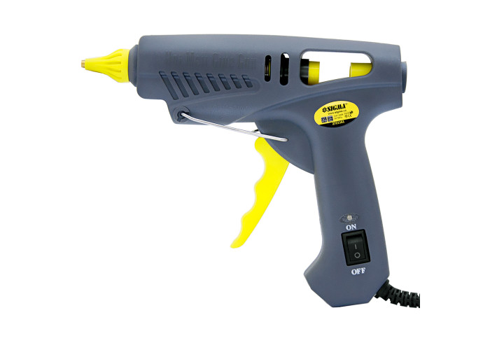Пістолет термоклеєвий з вимикачем Ø11,2мм 250Вт Sigma (2721161) призначений для склеювання кераміки, паперу, картону, пластмаси, дерева і металу. Склеювання відбувається шляхом розігріву клейового стрижня усередині пістолета і нанесення розплавленого клею на робочі поверхні. Застосовується як в побуті, так і на виробництві. Дуже добре підходить для вирішення завдань різного ступеня складності. Особливості: вимикач на корпусі дозволяє, не відключаючи пістолет з мережі, робити перерви в роботі; мережевий індикатор на ручці точно показує надходження харчування; пластик високої якості, під час експлуатації не деформується під впливом температур; конструкція пістолета оснащена захистом від висмикування шнура; сопло пістолета виготовлено з латуні; встановлений клапан-запобіжник, що запобігає мимовільне витікання клею; надійна лита конструкція камери нагрівального елементу виготовлена з якісного матеріалу і не виходить з ладу при впливі температур; стрижні клейові 11.2 х 80 мм. Перед початком роботи вставте клейов
