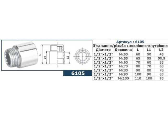 Хромовані латунні подовжувачі - це один з численних видів різьбових фітингів (трубних зєднувачів), які встановлюються в системах опалення та водопостачання для невеликого подовження ділянки труби (до 10 см). Застосовується для подовження зєднань компонентів інженерної системи, обладнання або приладів, що мають внутрішню / зовнішню трубну різьбу Потреба в удлинителях, як правило, зявляється на фінальній стадії ремонту. Для відкритих ділянок встановлюються саме хромовані подовжувачі, тому як вони відмінно гармонують з сантехнікою (наприклад з полотенцесушителямі або зі змішувачами).