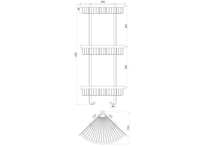 Полиця потрійна кутова (сітка) з крючками TOPAZ 4115-3