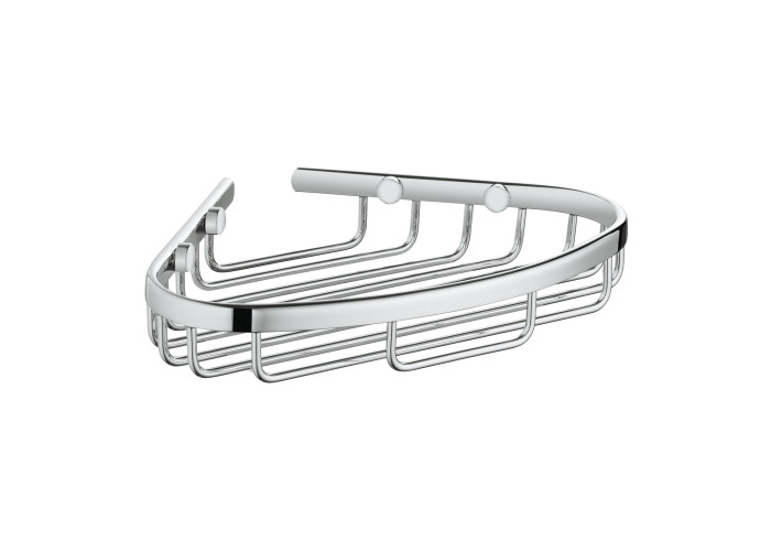 Кутова полиця-решітка Grohe BauCosmopolitan 40664001 з бортиками чудово доповнить інтер‘єр ванної кімнати з будь-яким дизайном. Завдяки їй можна зберігати ванні засоби гігієни не на бортах ванни, а на компактній полиці з закритими фіксуючими гвинтами 4х40 мм, і не боятися, що вони випадково впадуть. Довжина полиці - 202 мм.