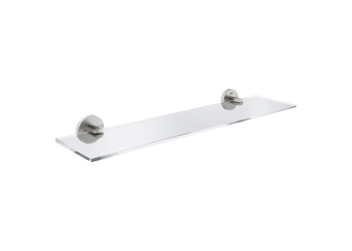 Полиця Grohe Essentials 40799001 виконана з прозорого скла з пластинами кріплення d = 54 мм з високоякісного металу з хромованим покриттям. Довжина полиці - 530 мм. Вона зробить дизайн будь-якої ванної кімнати більш привабливим. Полицю можна розташувати під дзеркалом та зберігати на ній ванні засоби гігієни.