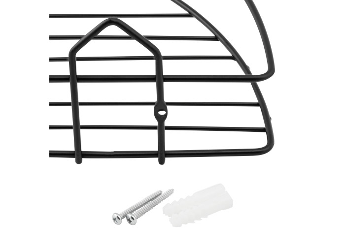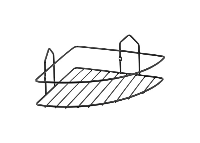 Полиця SW 23-109-1BLA з чорним матовим покриттям зробить дизайн будь-якої ванної кімнати більш привабливим. Вона має гратчасту кутову форму. Виріб призначений для зберігання різних косметичних засобів і аксесуарів. Полицю кріплять на стіні за допомогою шурупів, що входять до комплектації.