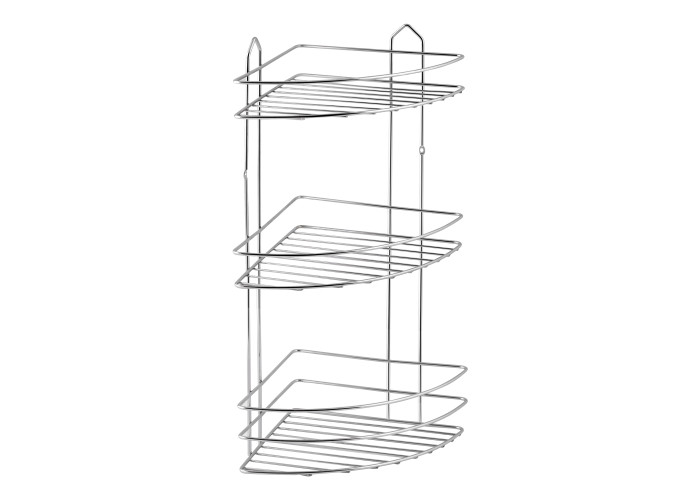 Полиця SW 23-109-3CRM з хромованим покриттям зробить дизайн будь-якої ванної кімнати більш привабливим. Вона має гратчасту кутову форму і складається з 3 ярусів. Виріб призначений для зберігання різних косметичних засобів і аксесуарів. Полицю кріплять на стіні за допомогою шурупів, що входять до комплектації.