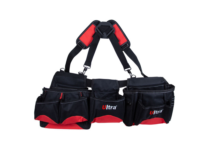 Пояс слюсарний з наплічниками 14 кишень ULTRA (7425022) використовується для розміщення при роботі різного ручного інструменту. Незамінний в умовах, коли інструмент завжди повинен знаходитися під рукою, при монтажних роботах. Пояс виготовлений з водовідштовхувального високоміцного поліестеру 1680D і містить 14 кишень різного розміру, що дозволяє зберігати в ньому велику кількість інструменту в необхідному порядку. Характеристики: матеріал поліестер - зносостійка, міцна, довговічна тканина; металеві тримачі для молотка і інших великогабаритних інструментів; розмір і конфігурація кишень забезпечують легкий доступ до вмісту; відділення різного розміру і ремінні петлі для розміщення інструменту і дрібних деталей; ергономічні м'які вставки з внутрішньої сторони забезпечують безпеку використання і комфорт; 14 кишень.