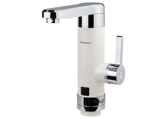 Кран-водонагрівач проточний HZ 3.0кВт 0,4-5бар для кухні гусак прямий на гайці (W) AQUATICA (HZ-6B243W) Клас захисту: IPX4. Мінімальний тиск в системі водопостачання: 0.4 бар. Максимальний тиск в системі водопостачання: 5 бар. Водневий показник води (pH): 6.5-8.5. Загальна мінералізація води: не більше 1500 г/м³. Тільки для чистої води без домішок, що містять абразиви (пісок, глину, вапно тощо). Проточний водонагрівач Aquatica HZ-6B243W - це змішувач для кухні з автономним підігрівом води. Термостійкий корпус з цифровим дисплеєм для демонстрації температури, всередині знаходяться нагрівальні елементи. Вилив Г-подібний, короткий, з вбудованим аератором. Повертається на 360 градусів, завдяки чому дозволяє зручно мити посуд і продукти харчування. Ручка важільного типу для регулювання потоку гарячої води розташована збоку. Такий проточний кран-водонагрівач прекрасно підійде для використання на домашній кухні, на дачі або в кафе, де немає можливості поставити газову колонку або бойлер. Переваги: приємний зовнішній вигляд; компактний розмір; просте управління; цілодобовий доступ до гарячої води; захист від попадання води на ТЕН. Установка здійснюється врізним способом з кріпленням на гайці, також кран необхідно підключити до електромережі 220 В. Гарантія на даний кран водонагрівач проточний електричний - 12 місяців.