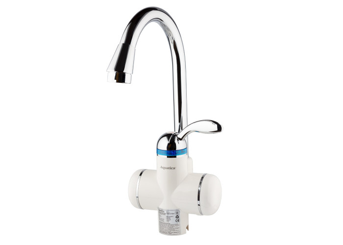 Кран-водонагрівач проточний LZ 3.0кВт 0,4-5бар для кухні гусак вухо, на гайці AQUATICA (LZ-6B111W) Клас захисту: IPX4. Нагрівальний елемент: ТЕН. Мінімальний тиск в системі водопостачання: 0.4 бар. Максимальний тиск в системі водопостачання: 5 бар. Водневий показник води (pH): 6.5-8.5. Загальна мінералізація води: не більше 1500 г/м³. Тільки для чистої води без домішок, що містять абразиви (пісок, глину, вапно тощо). Кран водонагрівач проточний електричний LZ-6B111W - це унікальний пристрій з автономним підігрівом води для установки на кухні в квартирі, на дачі або в закладах громадського харчування. Працює такий кран від побутової електромережі з напругою 220 В. Цей проточний водонагрівач Акватика складається з термостійкого білого корпусу з елементами підігріву, поворотного J-подібного виливу з аератором, а також важеля для регулювання напору і температури струменя. Переваги: сучасний дизайн; постійний доступ до гарячої води; просте управління; займає мінімум місця; захищений від попадання вологи на електричні деталі. Гарантія на проточник LZ-6B111W діє протягом 1 року з моменту покупки.