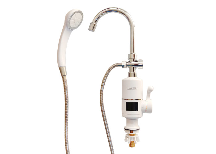 Проточний водонагрівач для ванни з лійкою і шлангом SDR-B05ST від бренду WEZER – це практичне і зручне рішення, яке дозволить не лише мати постійний доступ до теплої води, а й економити корисне місце. Форма гусака моделі – поворотний високий типу вухо, кріплення на гайці. Даний водонагрівач комплектується датчиком температур. Проточний кран водонагрівач від компанії Wezer - це якісний і стильний виріб, що здатен зробити використання води комфортнішим. Основною особливістю виробу є можливість за короткий час збільшити температуру води, зробивши її теплою або гарячою. А головне, пристрій не залежить від наявності гарячої води в системі. Перевага водонагрівачів бренду - це проста установка: не потрібно викликати майстра, а можна зробити все самостійно. Якість збірки гарантує повну безпеку використання даного виробу.