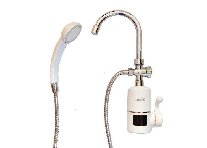 Проточний водонагрівач для ванни з лійкою і шлангом SDR-B05WST від бренду WEZER – це практичне і зручне рішення, яке дозволить не лише мати постійний доступ до теплої води, а й економити корисне місце. Форма гусака моделі – поворотний високий типу вухо, настінне кріплення. Даний водонагрівач комплектується датчиком температур. Проточний кран водонагрівач від компанії Wezer - це якісний і стильний виріб, що здатен зробити використання води комфортнішим. Основною особливістю виробу є можливість за короткий час збільшити температуру води, зробивши її теплою або гарячою. А головне, пристрій не залежить від наявності гарячої води в системі. Перевага водонагрівачів бренду - це проста установка: не потрібно викликати майстра, а можна зробити все самостійно. Якість збірки гарантує повну безпеку використання даного виробу.