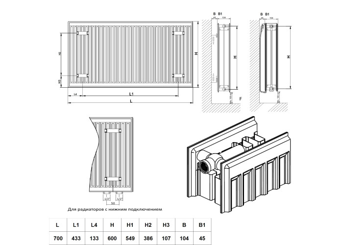 Панельний радіатор, кран "Маєвського", кріплення, техпаспорт, гарантійний талон