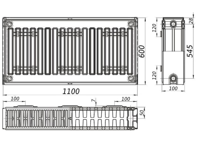 Радіатор сталевий панельний FORNELLO 22-типу бокового підключення 600-висоти 1100-довжини
