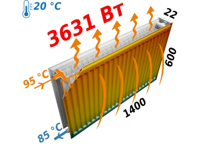• Теплова Потужність ∆t=70/60/50°C, Вт - 3633/2941/2316