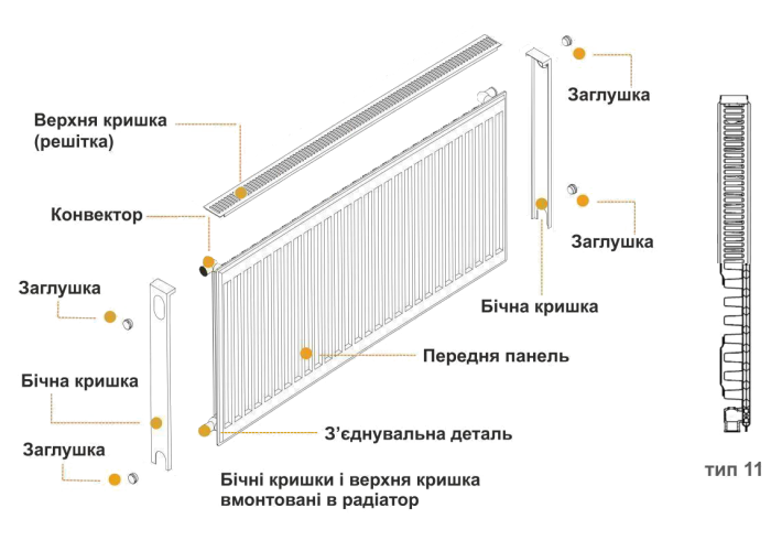 Радіатор сталевий панельний тип 11 (бок) 500х2500 KALDE 0311-rad-502500 2787Вт