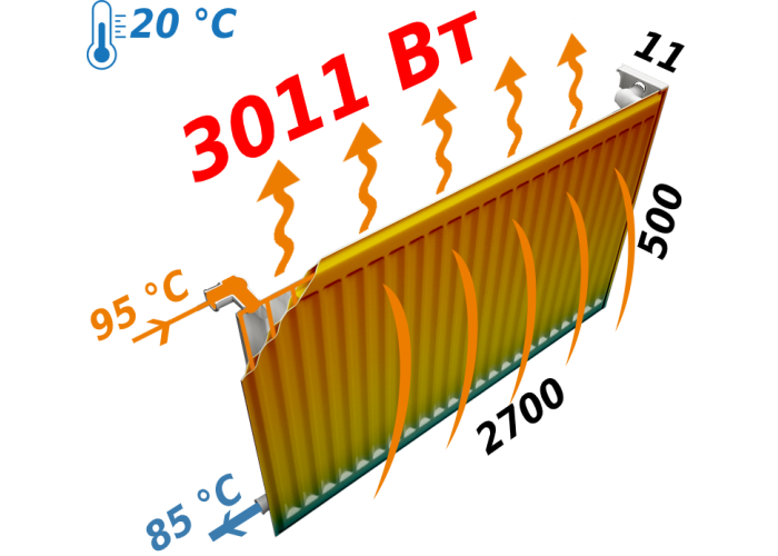 • Теплова Потужність ∆t=70/60/50°C, Вт - 3010/2408/1926