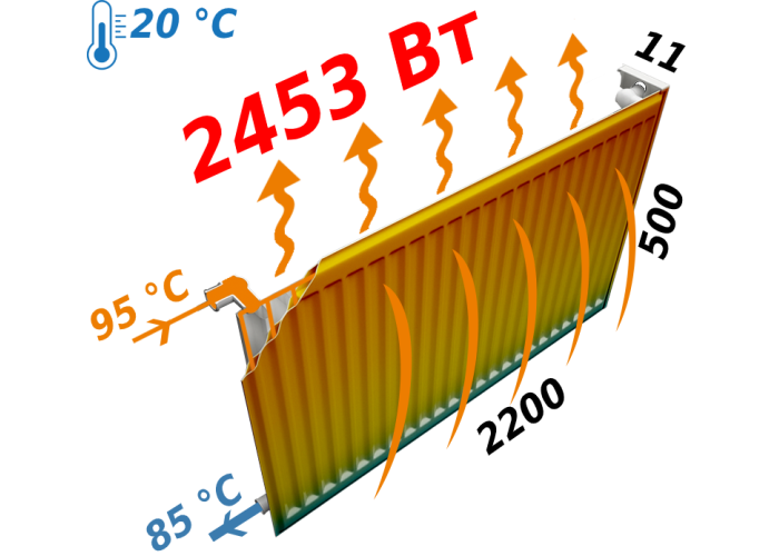 • Теплова Потужність ∆t=70/60/50°C, Вт - 2452/1962/1570