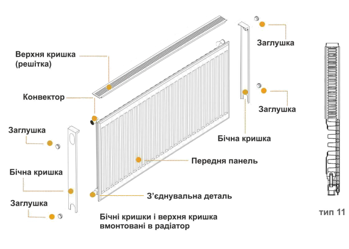 • Теплова Потужність ∆t=70/60/50°C, Вт - 3344/2675/2140