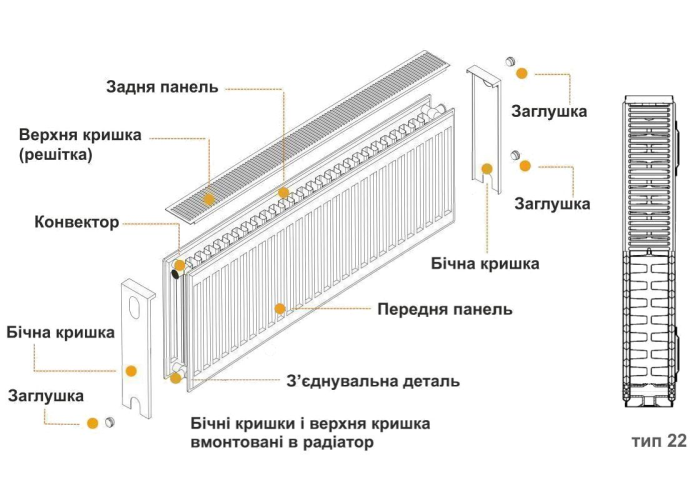Радіатор сталевий панельний тип 22 (бок) 400х1100 KALDE 0322-rad-401100 2057Вт
