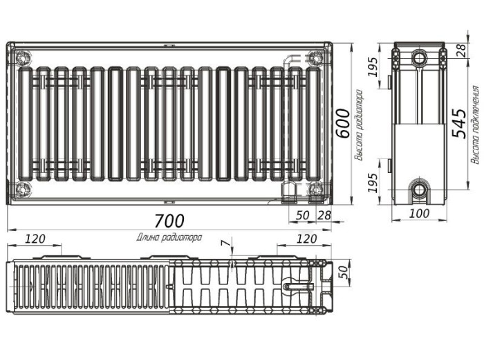 Радіатор сталевий панельний тип 22 (низ.пр) 600x700 KALDE 0322-cpr-600700 1846Вт