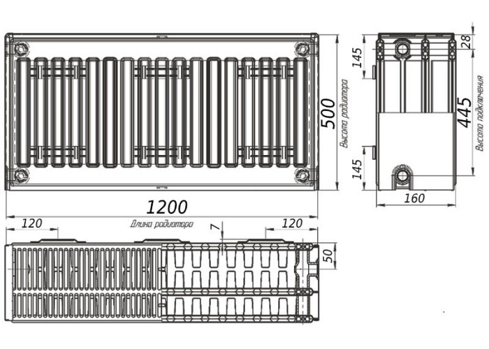 Радіатор сталевий панельний тип 33 (бок) 500х1200 KALDE 0333-rad-501200 3549Вт